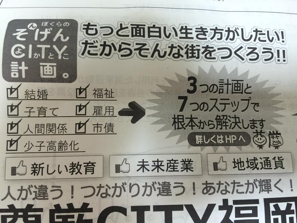 この年になるとこういうことにも少しは興味を持たないとな、って気がしてきましたので、今回は来週11/16に行われる福岡市長選挙の立候補者を調べてみました。