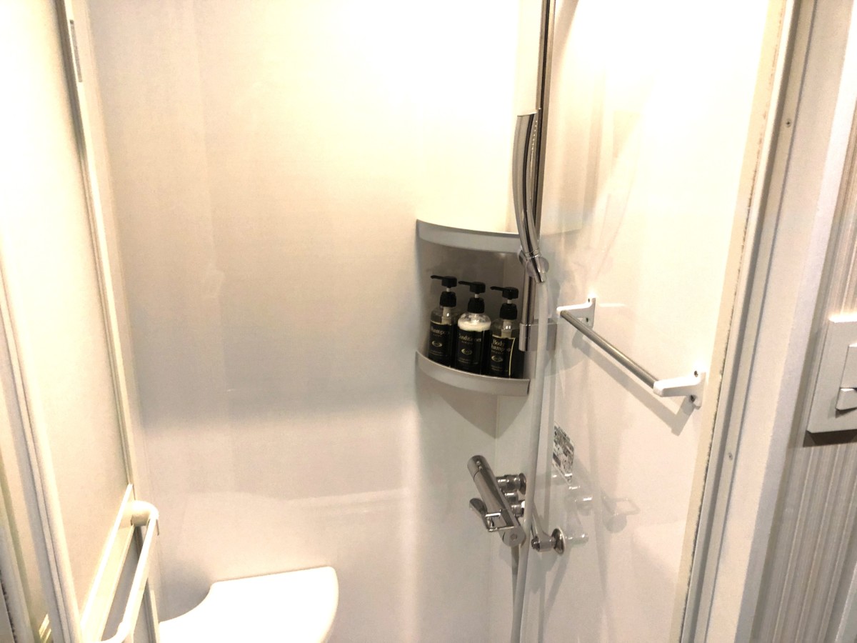 こちらがシャワー。全部で6室あります。シャンプー・トリートメント・ボディソープも揃ってます。
